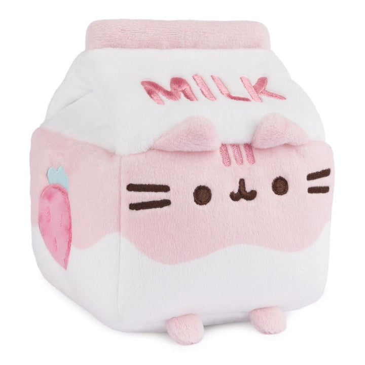 - PUSHEEN STRAWBERRY MILK PLUSH: This cute Pusheen sip stands 6` tall and has soft pink and white plush accented by embroidered details, including a strawberry on each side. It also features Pusheen`s signature smile, pointed ears, and striped tail.